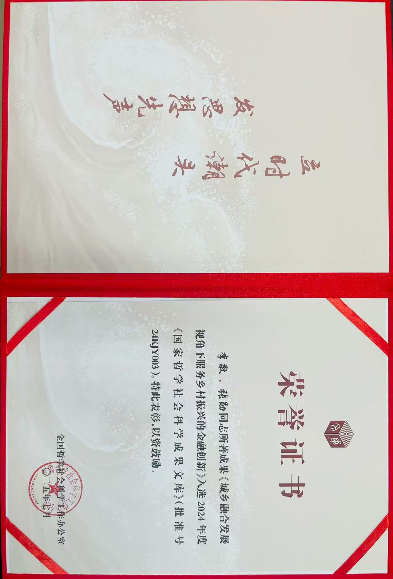 近日,我校党委副书记、校长李敬教授作为第一作者所著的《城乡融合发展视角下服务乡村振兴的金融创新》一书,已由人民出版社出版,并成功入选2024年度《国家哲学社会科学成果文库》,获得国家社科规划办表彰。这是我校哲学社会科学研究领域的又一标志性成果。