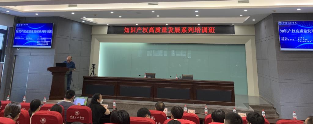 2022年6月25日,我校主办的知识产权高质量发展系列培训班在科技楼二楼连廊会议室顺利开班。
