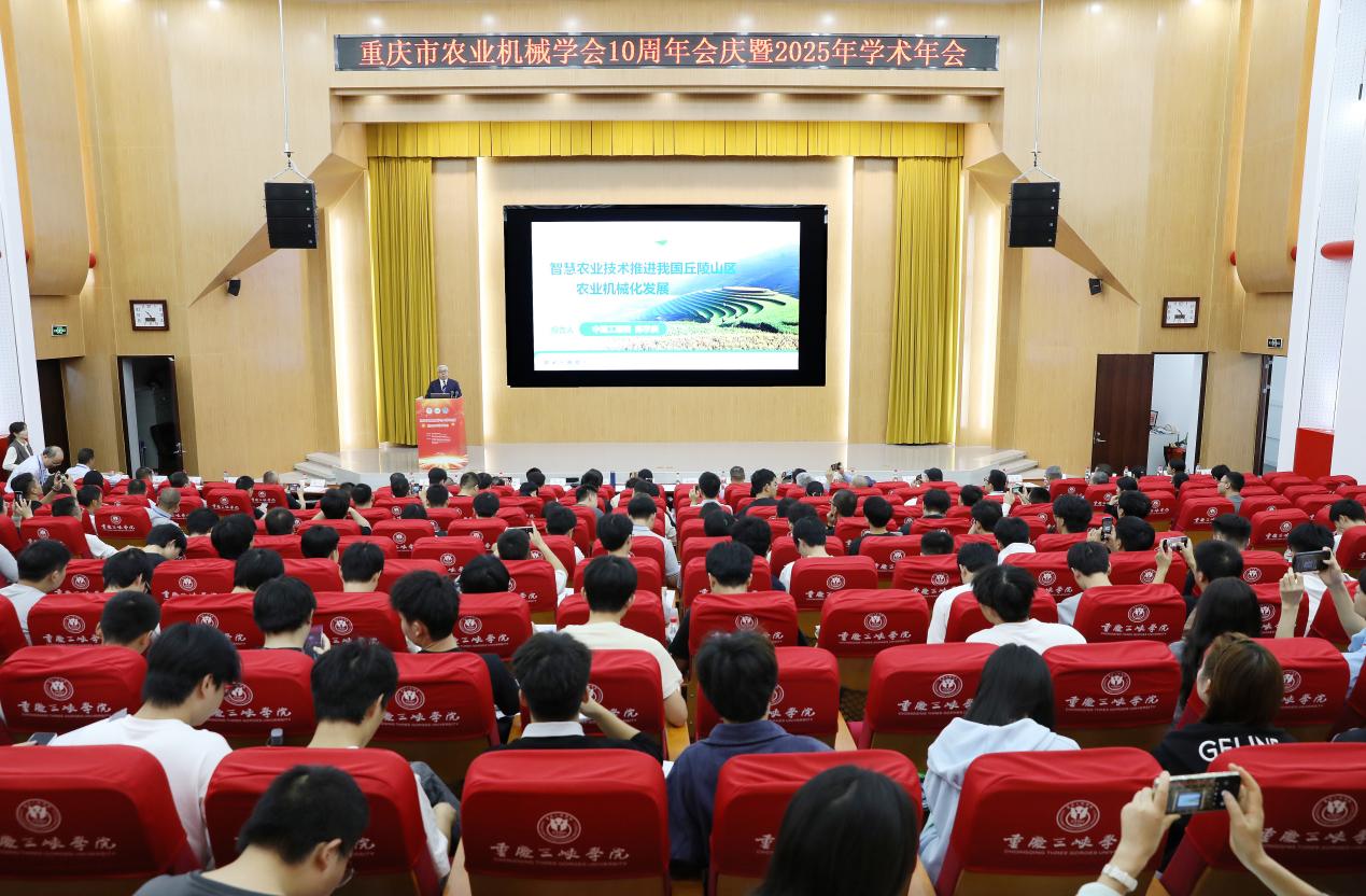 10月17日,重庆市农业机械学会十周年庆典暨2025年学术年会在我校举行。来自中国农业机械学会、农业农村部南京农业机械化研究所、北京航空航天大学、西南大学、贵州大学、湖南农业大学等60余家高校、科研院所和行业企业的180余位专家学者、企业代表及师生参会,共同探讨农业机械化领域的新技术、新理念,汇聚智慧与力量。党委书记许光洪出席开幕式并致辞。